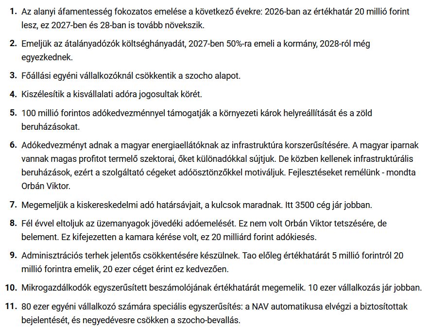 Bejelentette Orbán Viktor miniszterelnök úr a mai délelőtt folyamán a kormány és a kamara legújabb megállapodását, mely 11 pontot tartalmaz, adókönnyítéseket is.